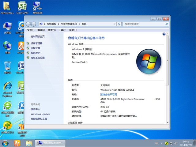 大地系统 GHOST WIN7 SP1 X64 官方旗舰版 V2015.01