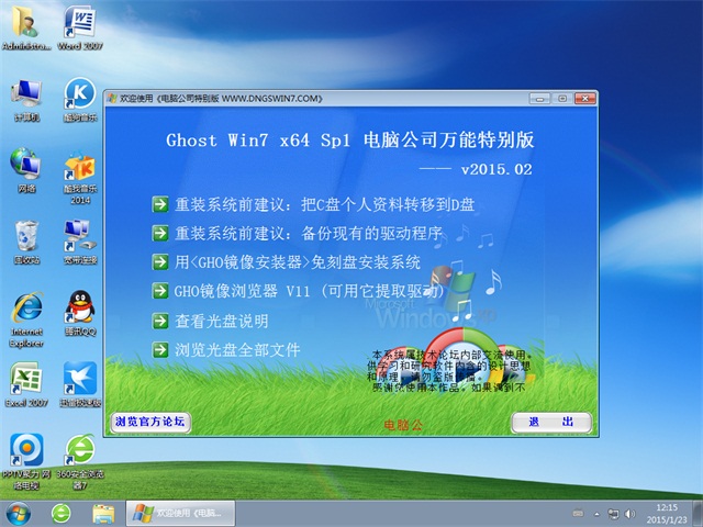 电脑公司 GHOST WIN7 SP1 X64 极速装机版 V2015.07电脑公司 GHOST WIN7 SP1 X64 极速装机版 V2015.07