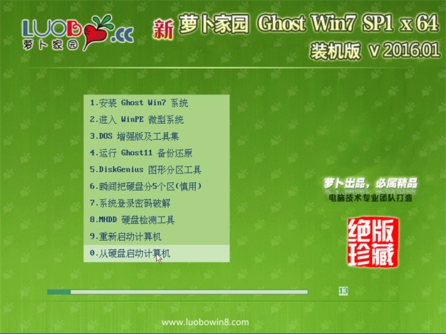 萝卜家园 GHOST WIN7 SP1 X64 装机版 2016.01