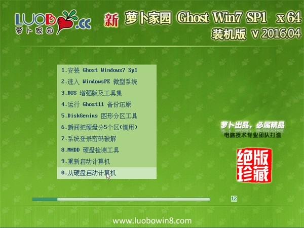 萝卜家园 GHOST WIN7 ( 64位) 装机版 V2016.04