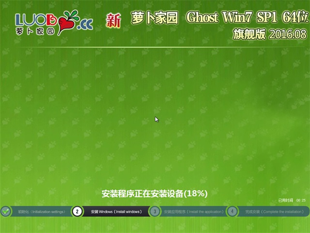 新萝卜家园系统安装全过程约6分钟,部分机子可达5分钟,高效的装机过程,新萝卜家园采用通过微软数字签名认证驱动并自动识别安装,新萝卜家园确保系统运行更稳定,本系统以微软Windows7 SP1 MSDN原版制作,确保系统纯净,