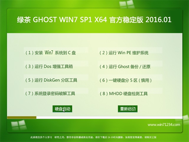 绿茶系统 GHOST WIN7 SP1 (64位) 装机版 V2016.01