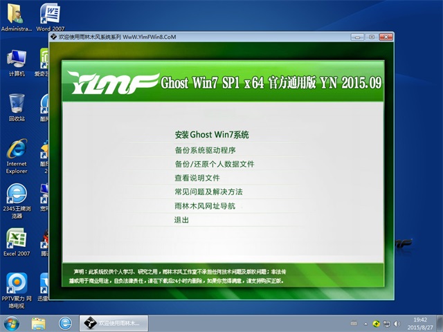 雨林木风GHOST WIN7 SP1 X64 官方通用版 V2015.09(64位)