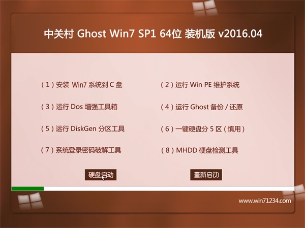 中关村系统 GHOST WIN7 ( 64位) 装机版 V2016.04