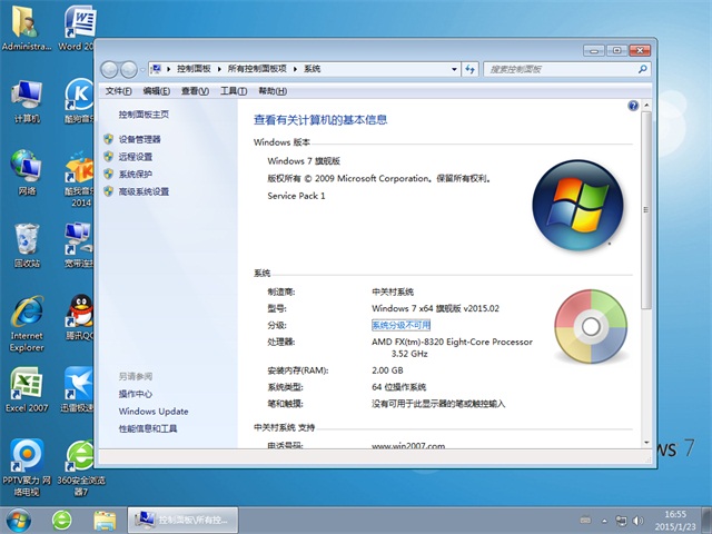 中关村系统 GHOST WIN7 SP1 X64 旗舰增强版 V2015.02