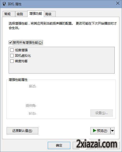 这时候我们可以试着禁用播放设备的增强性能,看看能否解决问题。