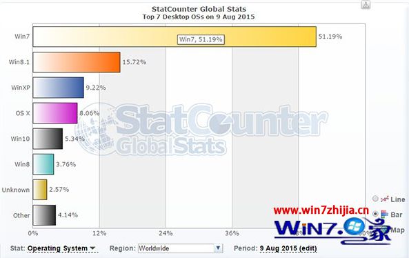 windows10发布以来,因为其全平台的兼容性和支持免费升级的特性,其正式发布日期一直备受广大消费者的关注,微软在7月29日在全球190个国家和地区发布windows 10正式版,以后安装的网友一直在呈上涨趋势,最新消息,依据流量监测机构statcounter统计数据,截至8月9日,win10全球份额已达5.34%,已经超越了win8的3.76%。