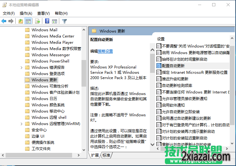 首先我们需要进入“组策略编辑器”关闭“windows update服务”服务,使用Win+R输入“gpedit.msc”,然后定位到计算机配置-管理模板-windows组件-windows更新找到“配置自动更新”设置为禁用。